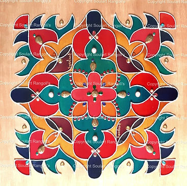 Soulart Royal Rangoli Collection (Mega), is new collection of large sized Rangolis. They are 2 times, 4 times and upto 9 times bigger than the usual medium sized rangolis of the royal collection. The rangoli artifacts from this collection are about 2ft, 3ft and upto 4ft in size, comprising of minimum of 24X24 dot to 40X40 dot rangoli designs. The predominant design style is that of a Maharashtrian Raangoli and it comprises of intricate complex designs on various surfaces like large tiles, acrylic or wooden boards. To view this collection...Contact Us